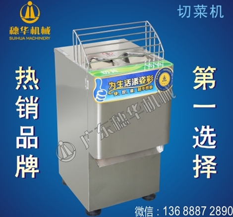 切菜機是利用先進技術研制成功的新型食品機械,切菜機具有體積小、功效高、功能齊全的優點,該機外形美觀,結構緊湊、操作簡便、工作可靠、功能齊全,凡與食物接觸部分均采用不銹鋼制造,符合衛要求,實為各類中西餐館作為原料設備的理想機械。