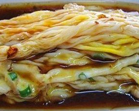 而我更喜歡欣賞的是腸粉出鍋的那一剎——在騰騰水霧中,那一塊布被拉起來,粉案上便變摩術般地變出一塊白玉般的“布”,這熱辣辣的“布”被快手地卷起來,疊到碟子上,如一卷卷袖珍的白綾。如果是牛肉腸,豬肉腸,你還隱隱的見到白綾上的“花紋”。每當此刻,我都對拉腸粉的師傅徒生敬意。此等對白米是何等的深情,好比年復一年日復一日地站在熊熊烈火前“織布”,一生織出多少萬丈“白綾”,織出廣府飲食文化燦爛的一章。毫不否認,將大米化作美味美食,離不開這個拉腸粉機器啦!